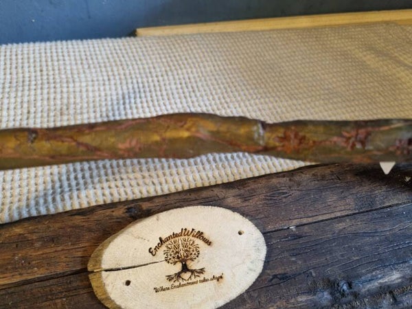 hand whittled wand from foraged wood.